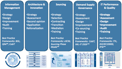 Virtually every organization works on or considers the added value of IT to the business. This added value is optimal when the delivery of IT services is perfectly aligned to the requirements of the business. In most businesses and organizations, this optimum situation is more a noble ambition than an everyday practice. With our Demand and Supply Governance services we help our customers setting the right strategies in following the business requirements and the consequences this will have for the IT and support requirements internally as well externally (vendor management).
